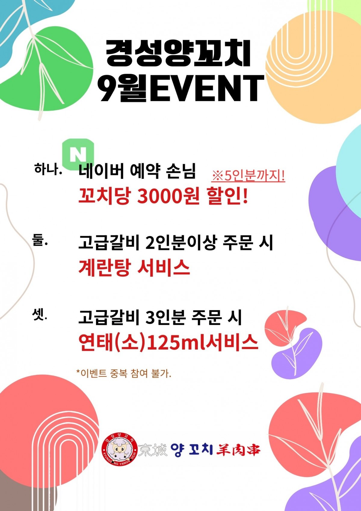 1. 꼬치류 1인분당 [3,000] 할인 [네이버 예약시]